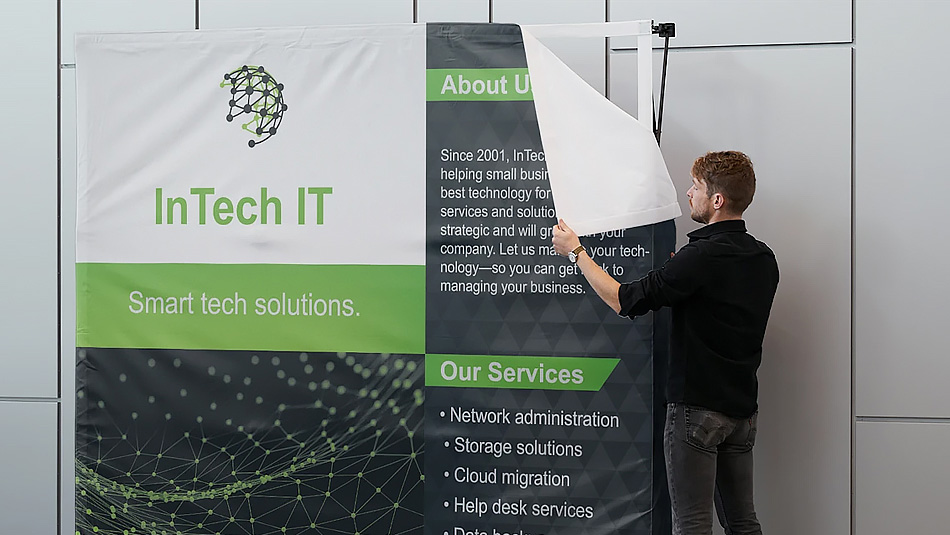 اگر برای آماده سازی غرفه و نمایشگاه خیلی دیر به فکر افتاده اید و زمان کمی در اختیار دارید و می خواهید در زمان کم بهترین آماده سازی غرفه را داشته باشید استند پاپ آپ گزینه بسیار مناسبی است.
