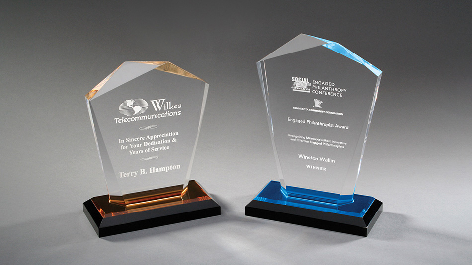یک ساعت کاربردی، فنجان قلم، یا یک برج کریستالی با حکاکی پیچیده انتخاب کنید. از میان هدایا و جوایز از پیش ساخته شده ما را انتخاب کنید، یا با طراحان متخصص ما کار کنید تا چیزی متمایز بسازید. شما می توانید جوایز خود را با آرم، عکس های حکاکی شده، متن و پایه های ظریف یا سخت افزار شخصی سازی کنید تا ظاهری کامل داشته باشید.